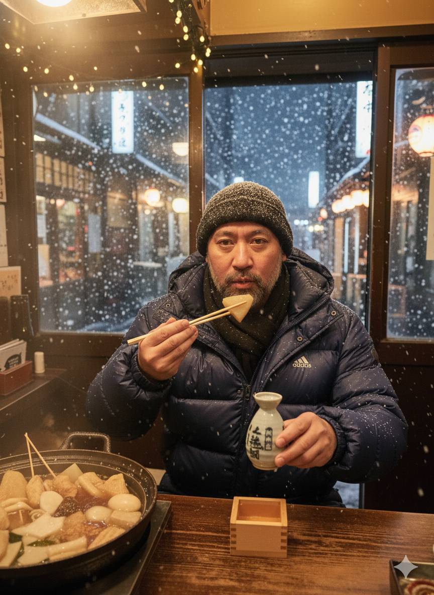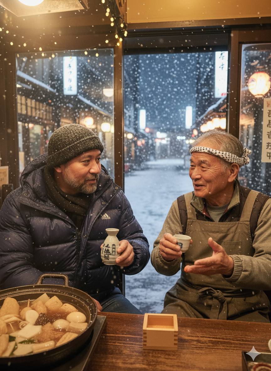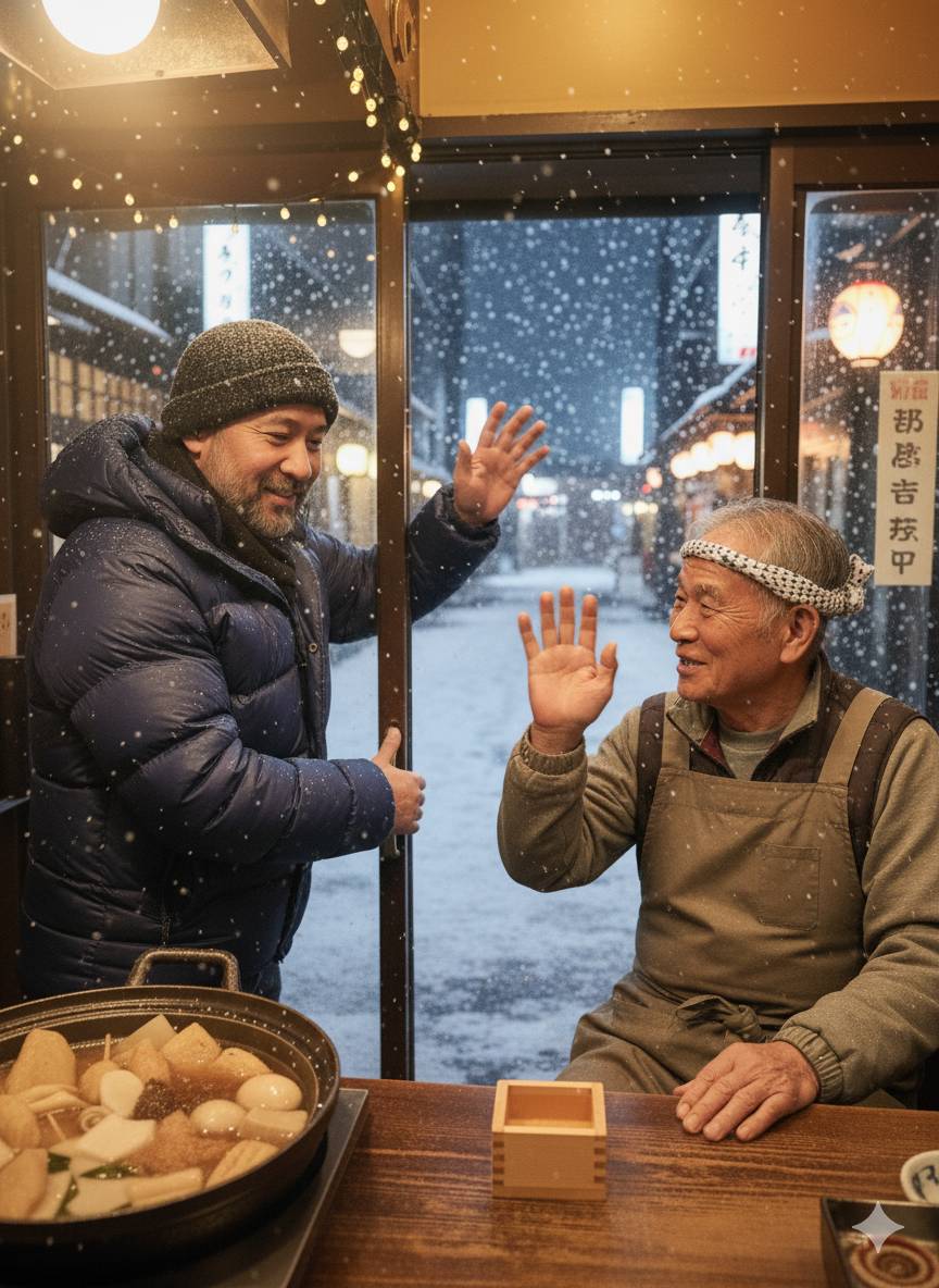 คุณลุงเจ้าของร้านโอเด้งมองชายไทยที่พูดญี่ปุ่นปนไทยคำอังกฤษคำอย่างเอ็นดู "ฮ่าๆ หนุ่มน้อย! วันนี้เป็นวันแรกที่มาอยู่ที่วักกะไนใช่ไหม? ดื่มเข้าไปให้ร่างกายมันอุ่น! คืนนี้หิมะตกหนักนะ"