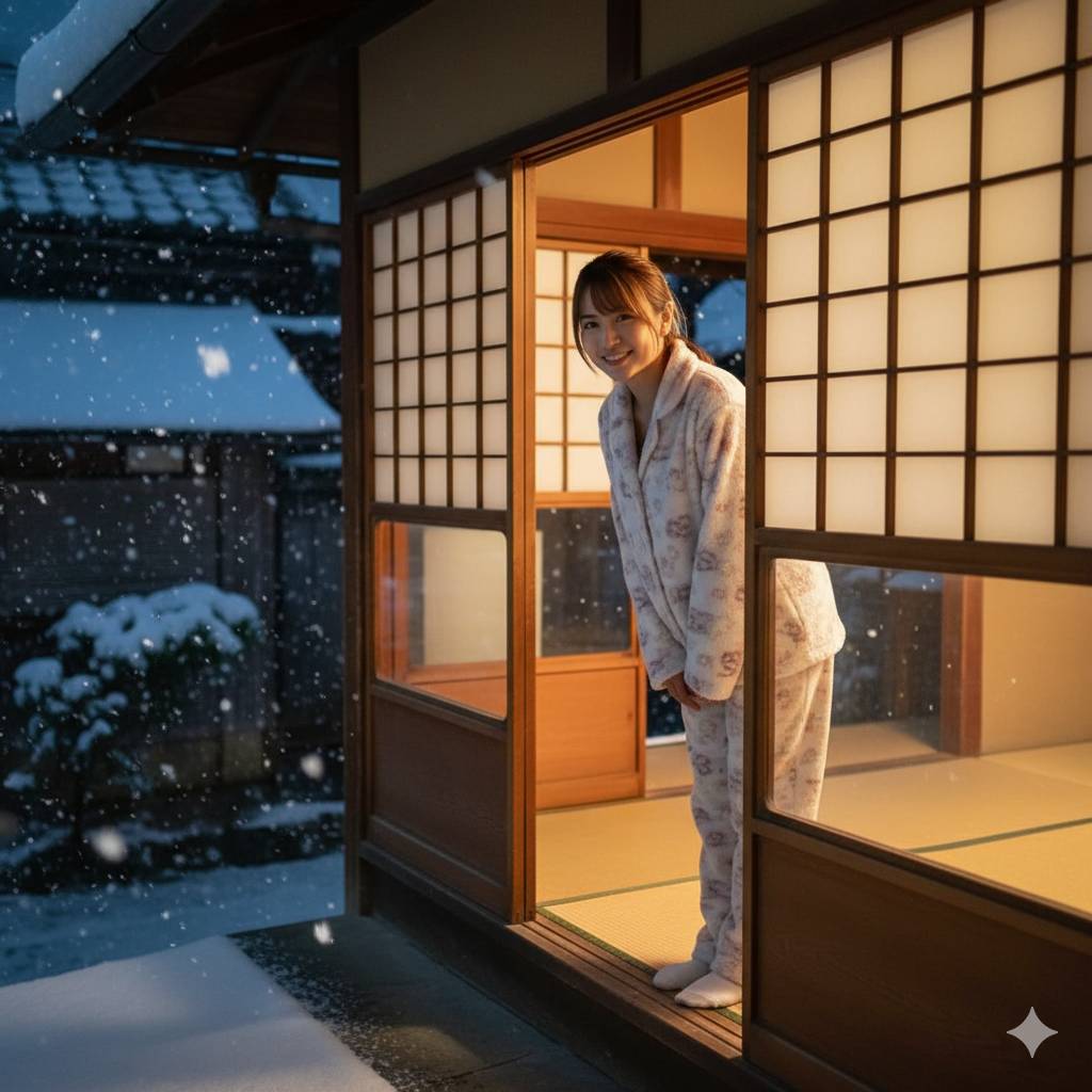 ปีเตอร์เงยหน้าขึ้นอย่างงงๆ มองขึ้นไปเห็นภรรยาในชุดยูกาตะคลุมทับด้วยเสื้อหนาวขนฟู "อ้าว! คานะจัง! ฉันหาทางกลับบ้านไม่เจอเลยกอดเพื่อนซี้ตัวนี้ไว้เป็นกำลังใจ... นี่คือบ้านเราเหรอ? ฉันเก่งจริง! หาเจอจนได้!"
